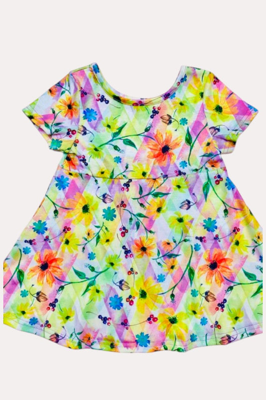 Multicolor floral print girls short sleeve dress X0555-6H