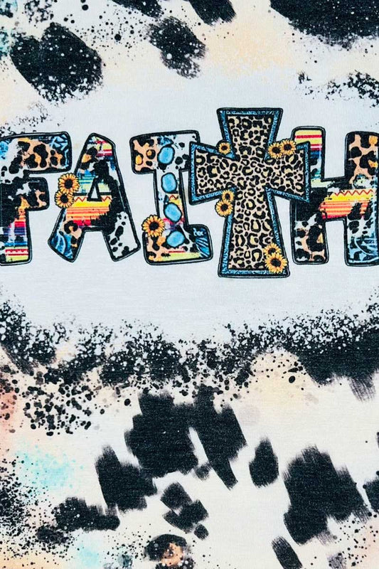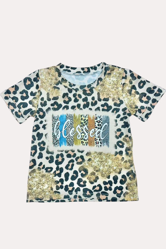 Girls t-shirt wholesale "FAITH" washed leopard print spots short sleeve D1108-20