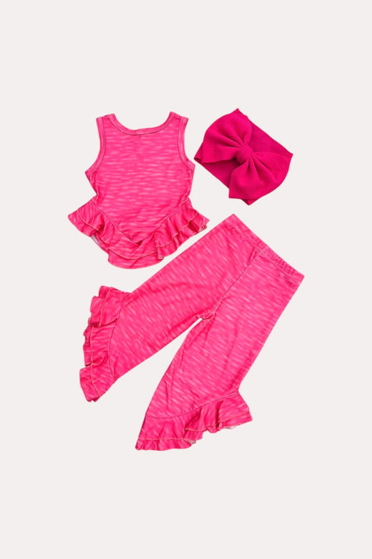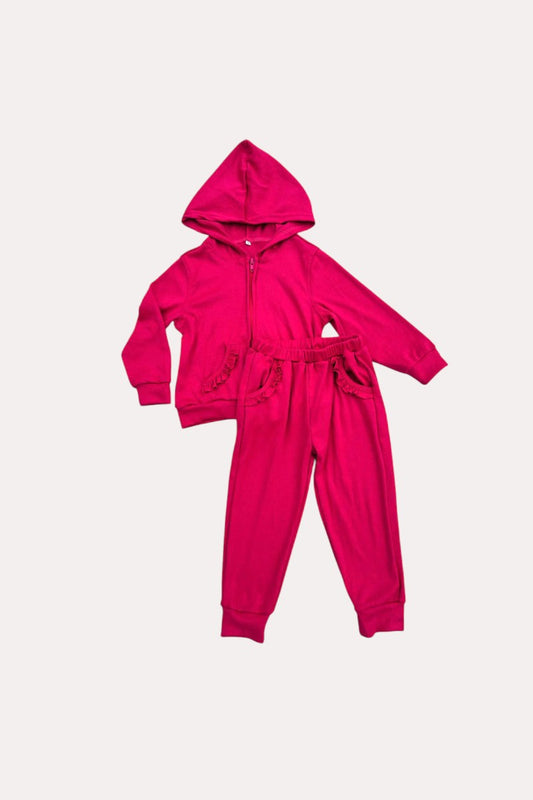 D2852 Hot pink knit hoodie top & pant 2pc girls outfit sets