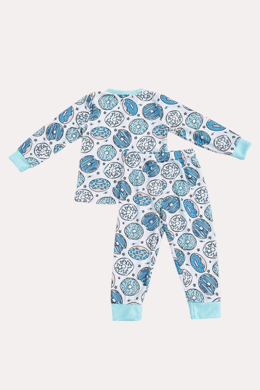 D2861 Blue donuts printed unisex children's 2pc pajamas sets