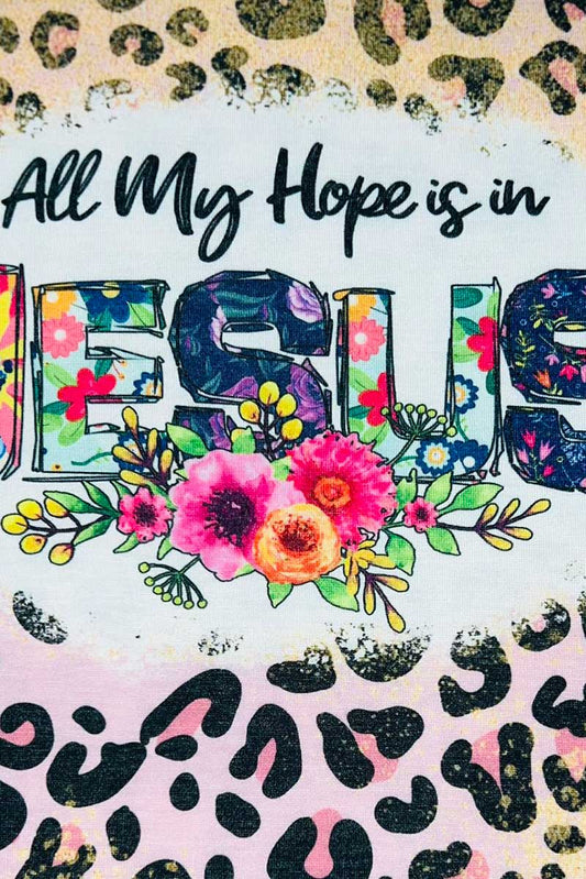 Wholesale girls t-shirt "All my hope is in JESUS" floral & animal print short sleeve top D1108-13