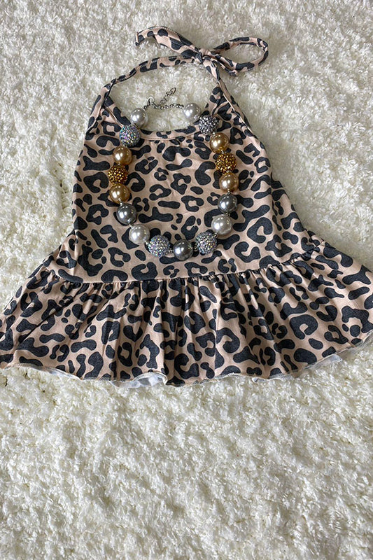 DLH2490 Kids leopard print tied sleeveless tank top with ruffle A757
