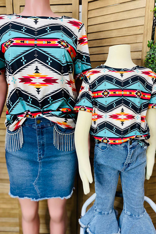 XCH0012-2H Mom and Me Aztex prints short sleeve girls top A7S7