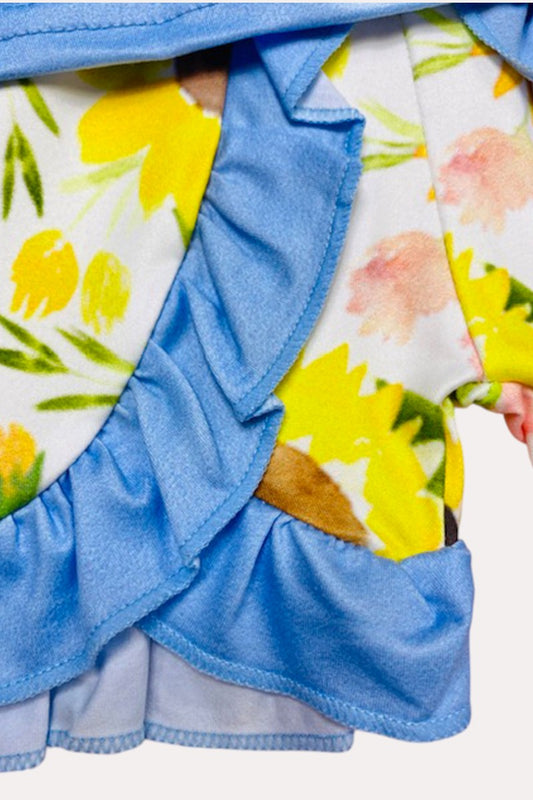 5696MZ Blue horse & sunflower printed blouse & short girl set