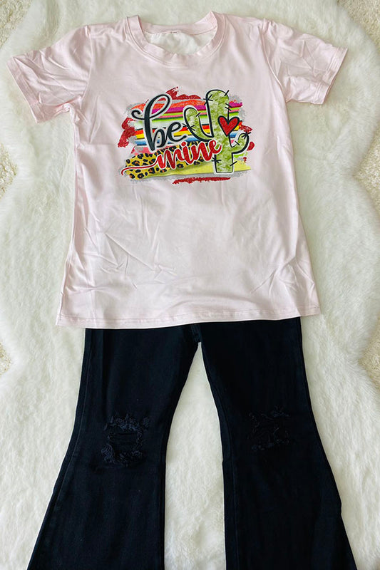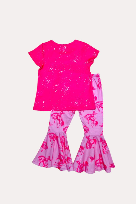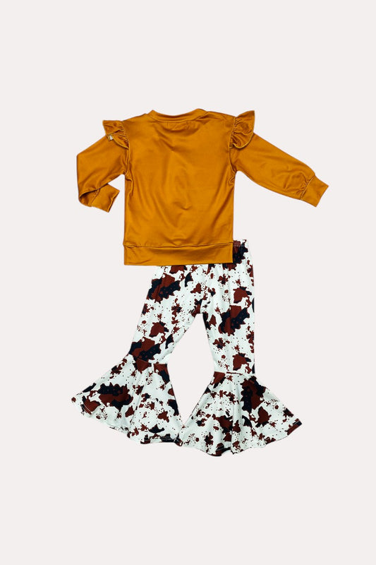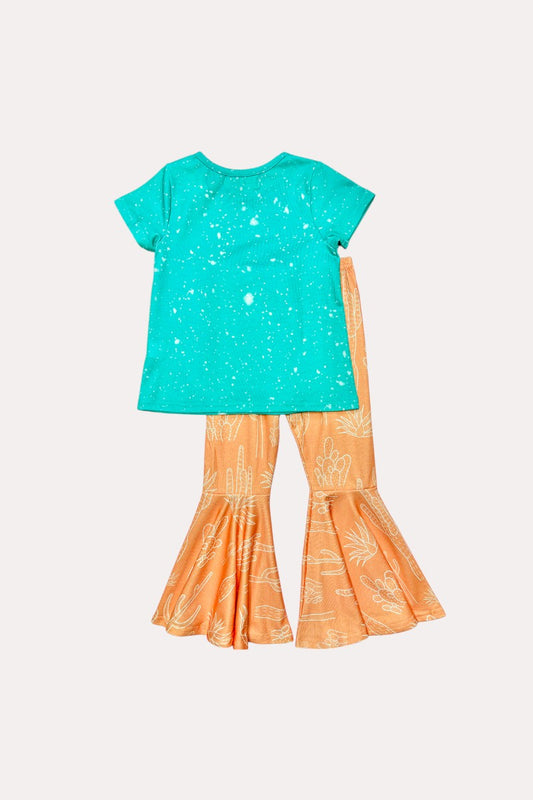 X0666-27 "HOWDY" & Cactus prints top bell bottom 2pc girls sets