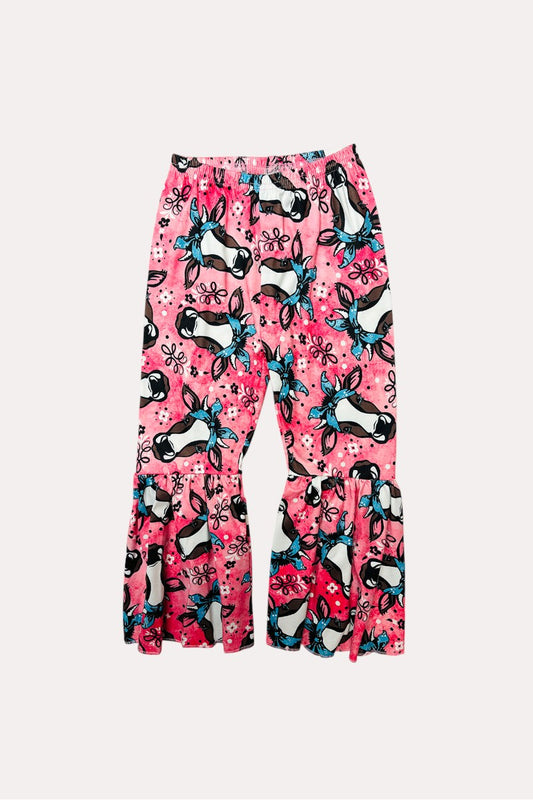 1101WY "CRAZY HEIFER" blue & pink cows 2 pc short sleeve set