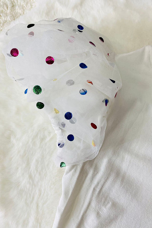 DLH2535 White lace sleeve top sparkle sequin skirt 2pc girls sets