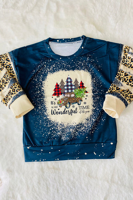 DLH2540 Kids "It's The Most Wonderful Time of The Year" Leopard Printed Top