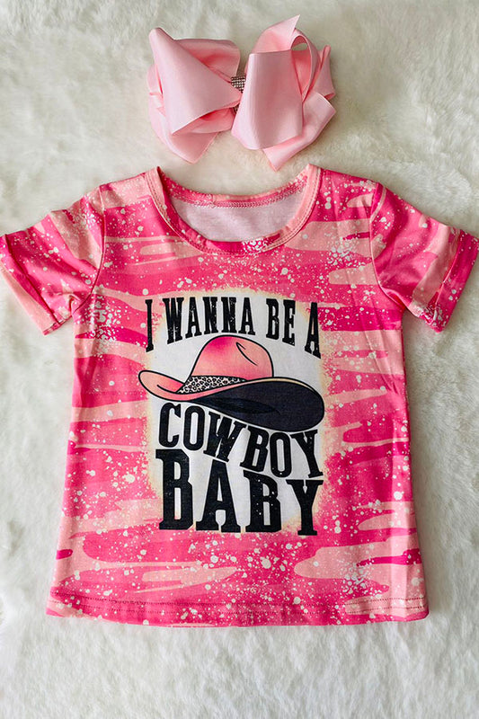 DLH2325 I WANNA BE A COWBOY BABY pink tie dye short sleeve girls tops