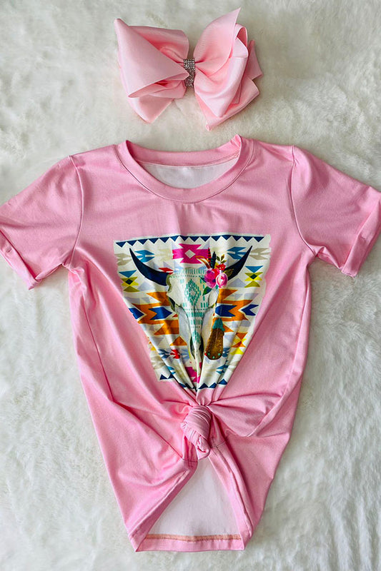 Light pink cow skull w/Aztec print short sleeve t-shirt DLH1215-31