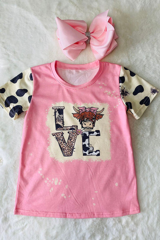 "LOVE" bull & leopard print short sleeve t-shirt DLH2569 (A10S6)