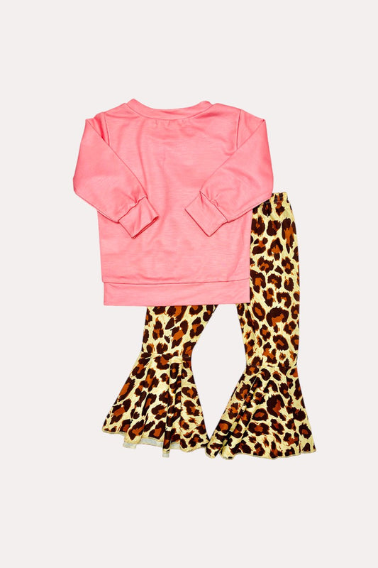 X0015-8 LOVE western top & leopard bell bottom 2pc girls sets