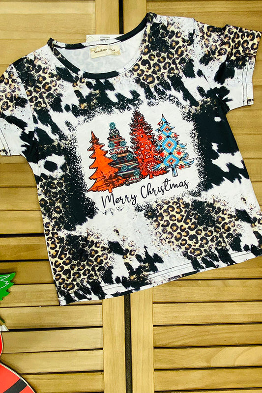 XCH0722-12H Kids "Merry Christams" paisley trees girls t-shirt