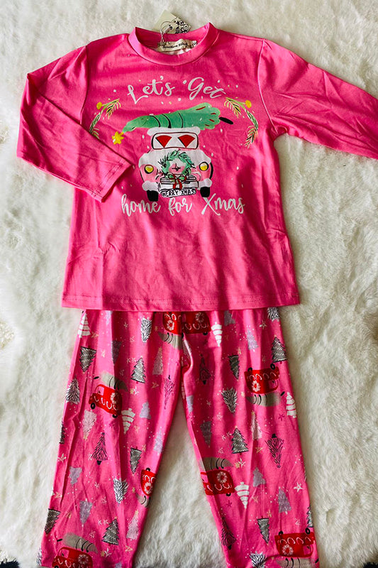 BQ2401 Mom and me Christmas pink top & pant girls pajamas sets