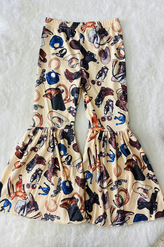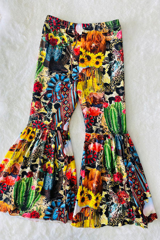 DLH1108-4 Western sunflower & jewel, cow girls printed bell bottoms