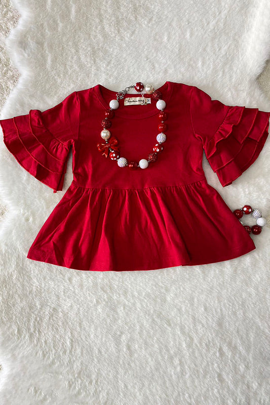 XCH01004 Red triple ruffle half sleeve girls top A7S7