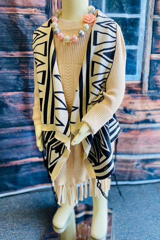 DLH2817 Black knitted long sleeve top flannel skirts girls outfit sets (A10S7)