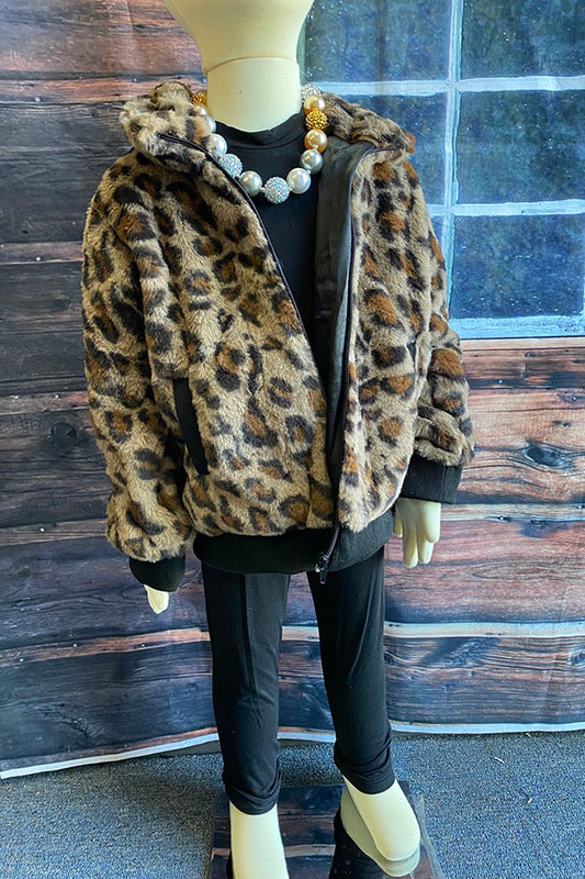 Kids Leopard Print Flannel Zipper Jacket DLH2643