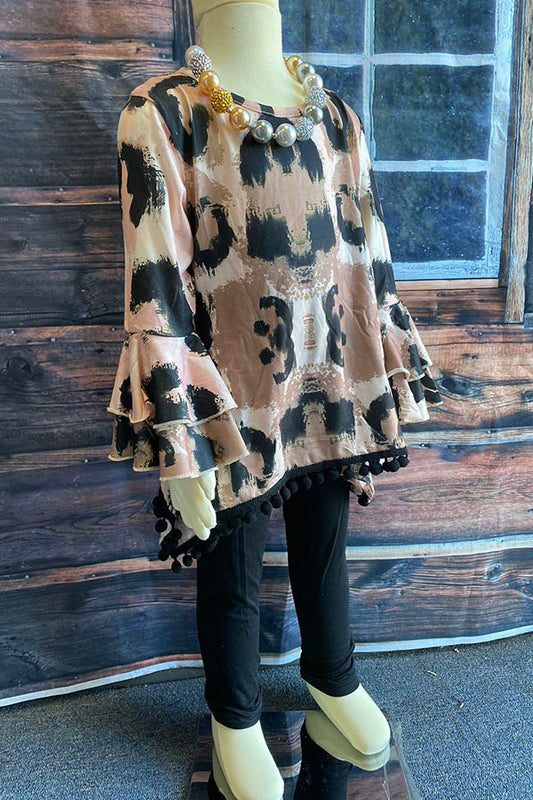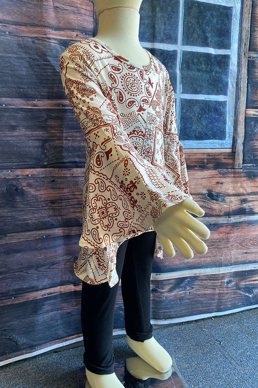 XCH0024-7H Wholesale paisley bell sleeve top black legging girls sets