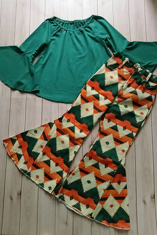 DLH2829 Green off shoulder top aztec denim jeans girls clothing sets