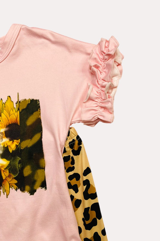 XCH0722-22H Sunflower & leopard cross short sleeve girls t-shirt