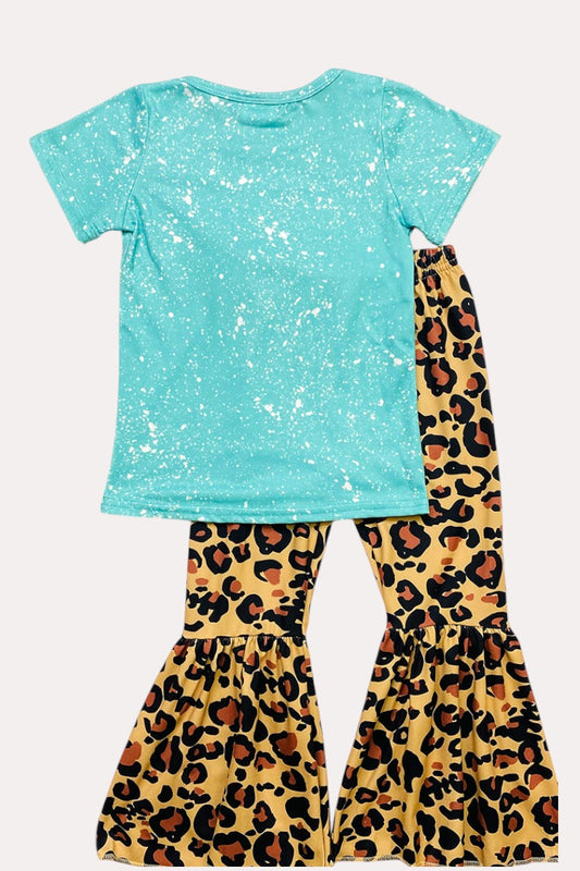 SaleD2612 Kids leopard & cow printed top bell bottom pant girls set