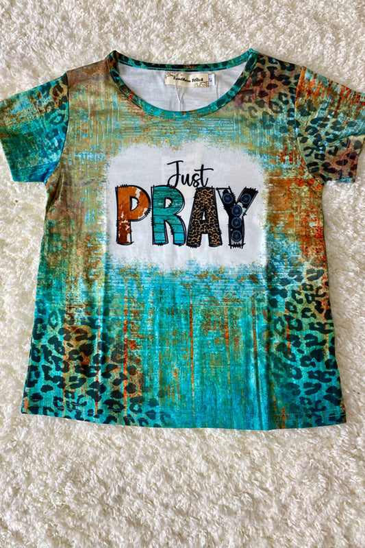 XCH0722-13H JUST PREY turquoise printed short sleeve girl t-shirt