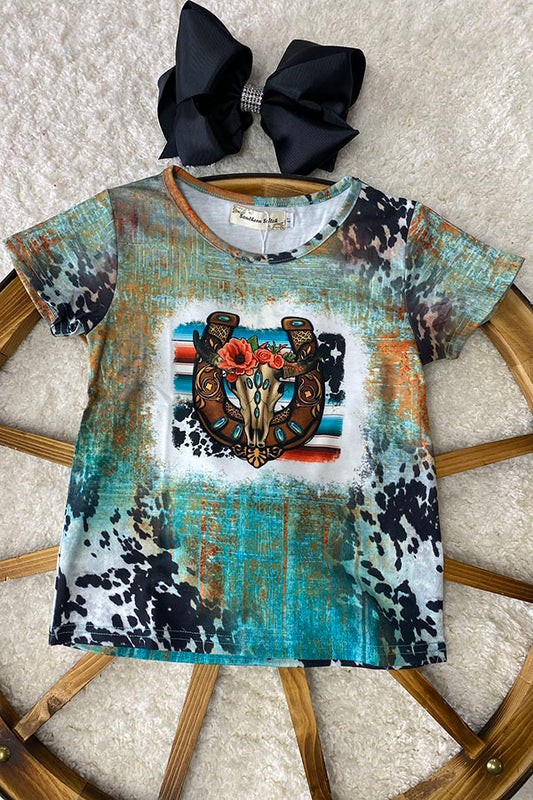 XCH0722-102H Horse shoe & bull skull printed short sleeve girl t-shirt