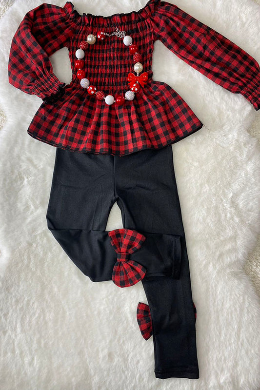 DLH2819 Buffalo off shoulder top black legging girls clothing sets