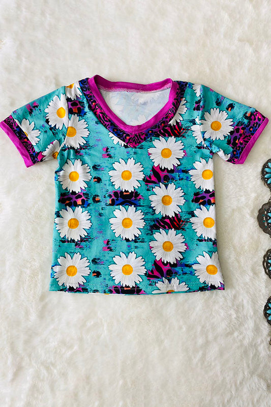 Daisy's & multicolor animal print short sleeve V-neck top D0821-1