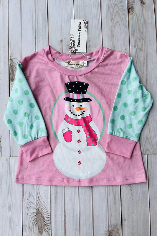 Christmas snowman printed pink long sleeve girls t-shirt XCH01017