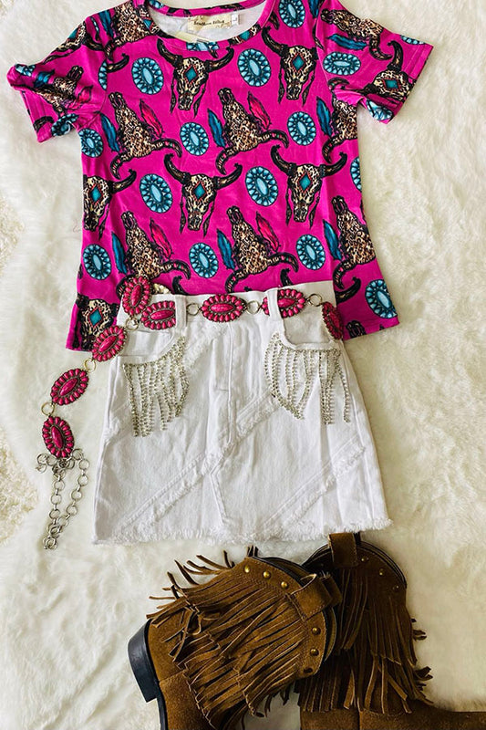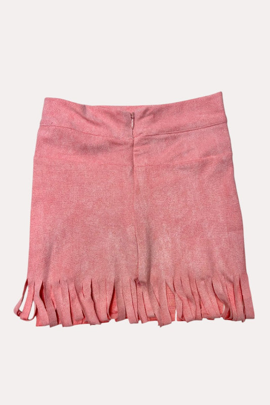 D2734 Pink faux suede rhinestone fringe girls skirts wholesale for 10/12Y