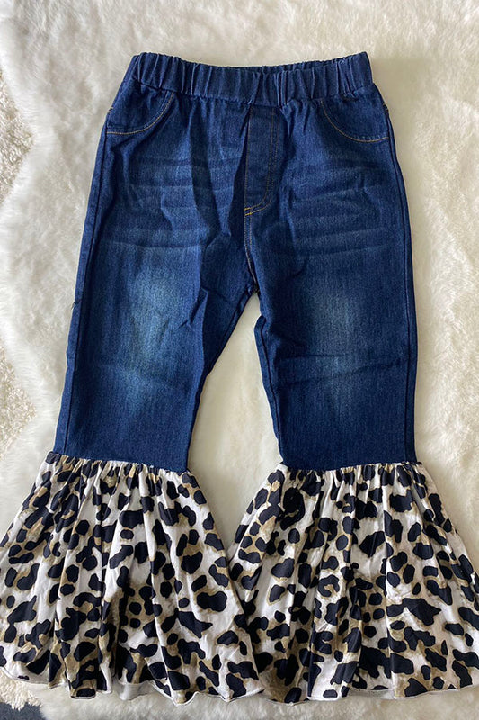 Dark blue denim w/leopard flare bell bottoms 206037M