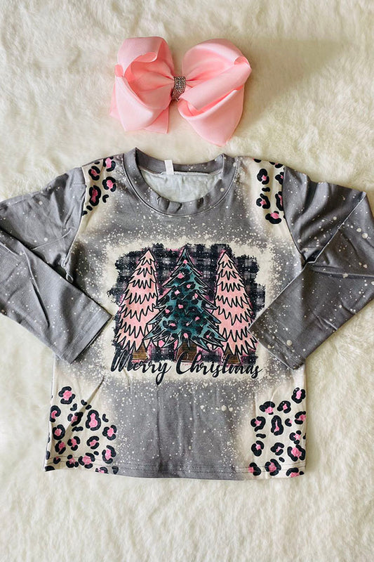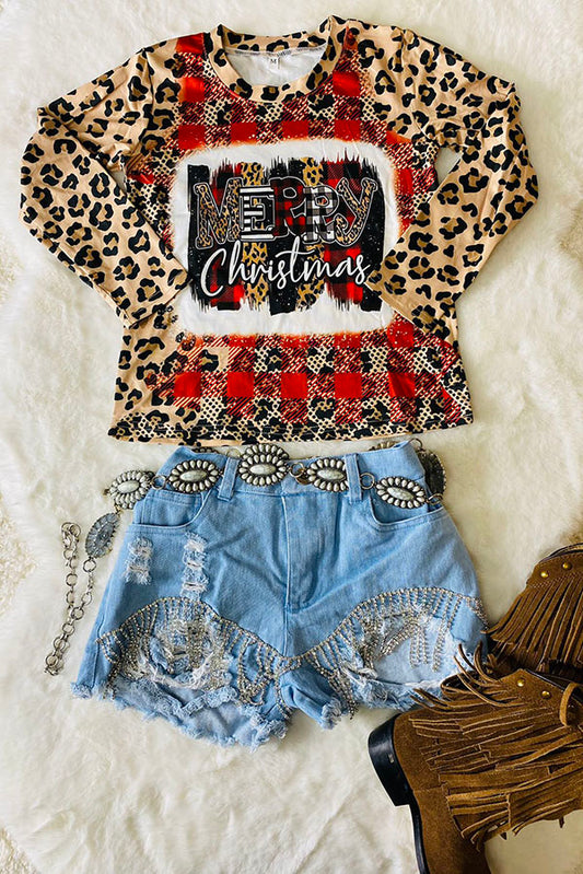 Kids "Merry Christmas‘’ Plaid & Leopard Print Top DLH2637