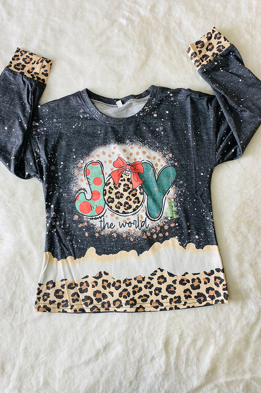 DLH2602 "JOY the world" leopard print grey long sleeve top