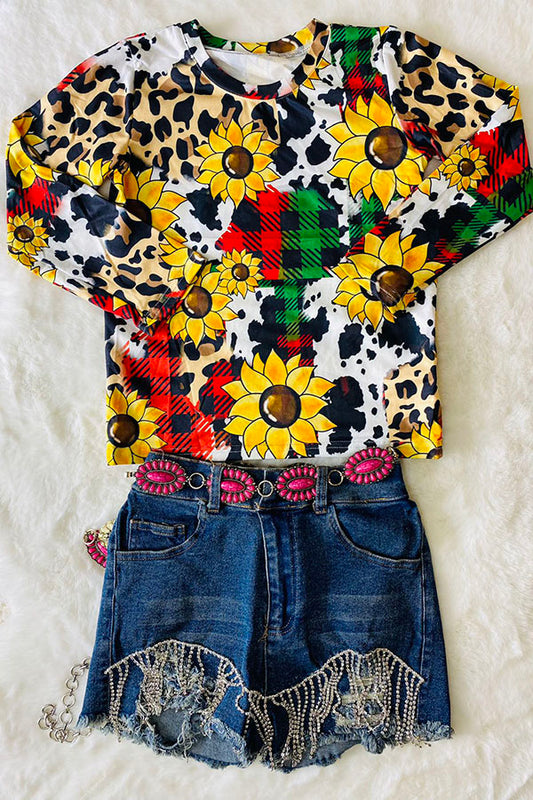 Flower & Plaid & Leopard print long sleeve t-shirt DLH0824-12