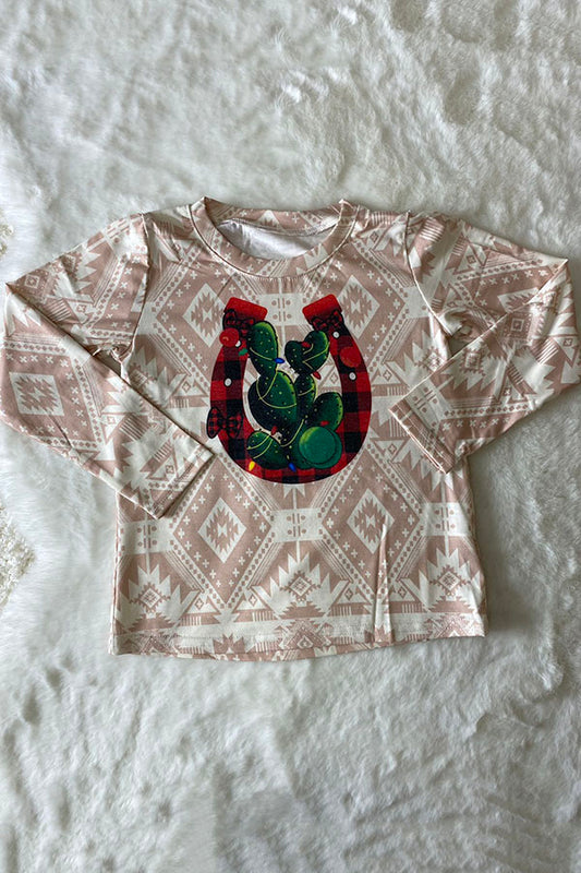 Horseshoe & Cactus print long sleeve t-shirt DLH0824-25