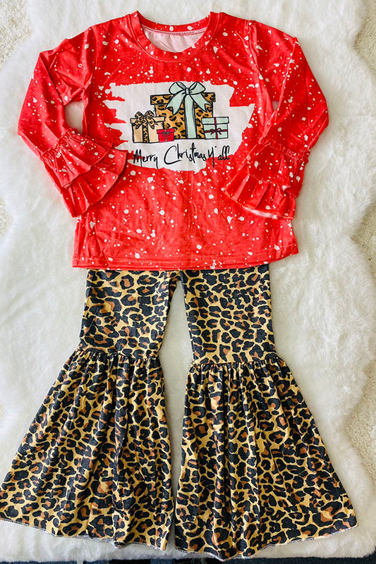 Merry Christmas y'all coral leopard printed girl set DLH0923-18