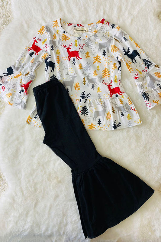 Multi Color Deers & Trees print bell-bottom 2pcs sets XCH0013-17H