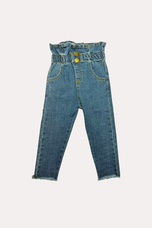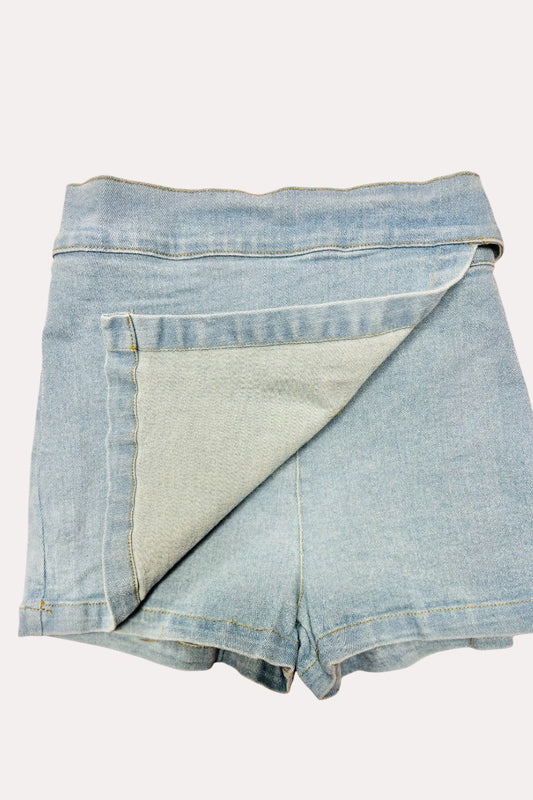 SaleD2416 Blue girls asymmetrical hem denim shorts