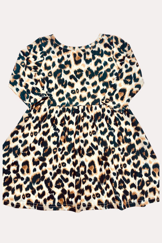 SaleX0555-26 Leopard printed long sleeve girls dress with pockets