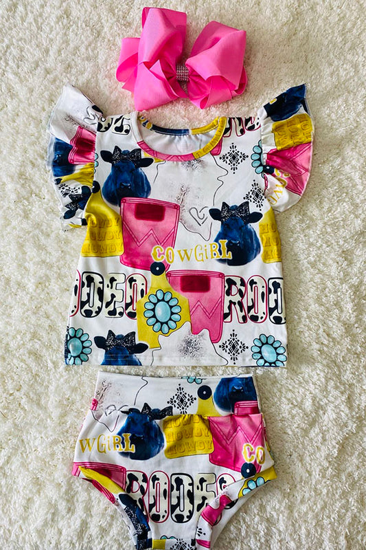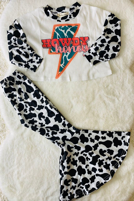 XCH0024-5H HOWDY honey lightning & cow prints 2pc girls set