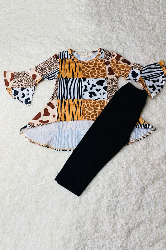 XCH0024-4H Animal prints high-low top black legging girls outfit sets wholesale