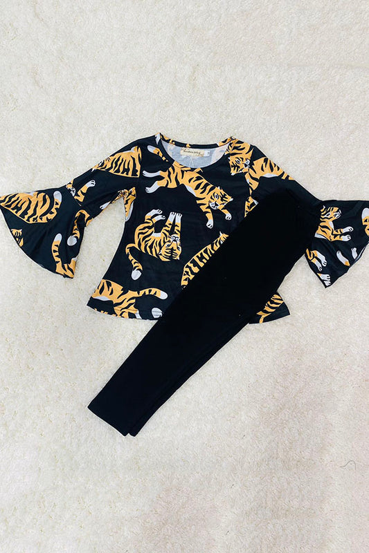 XCH0024-3H Wholesale tiger prints high-low style black legging girls outfit sets