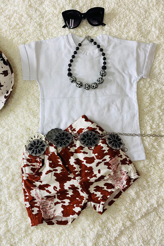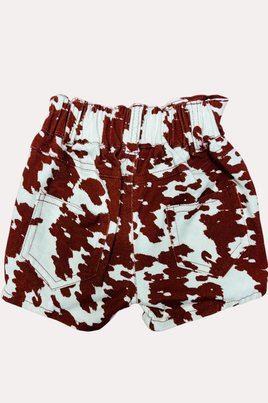 D2772 Brown cow prints denim girls shorts w/pockets