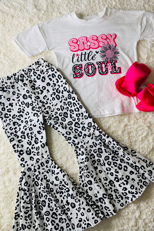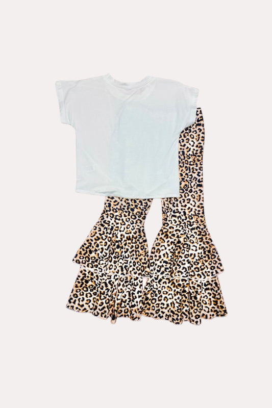 SaleD2697 White tied bow top & leopard bell bottom western girls sets
