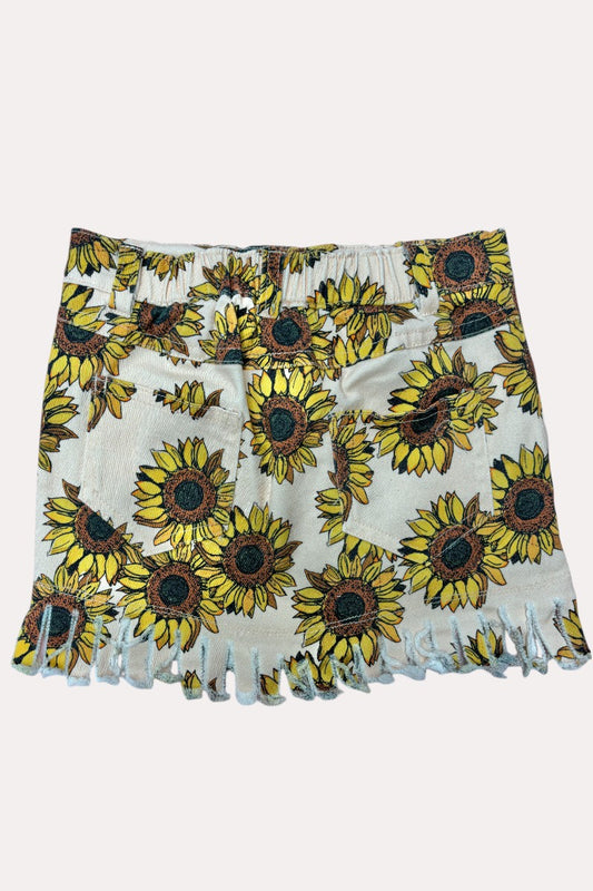 D2758 Sunflower prints fringe trim girls denim skirts