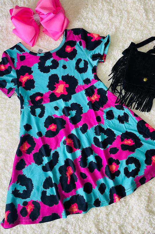 SaleXCH0020-2H Turquoise & Pink leopard prints short sleeve girls dress