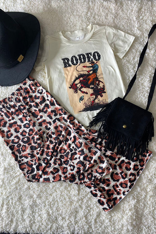 SaleRODEO Riding horse white short sleeve top leopard pant girls sets D2704