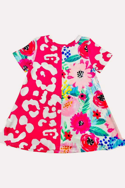 SaleX0020-3 Western Half floral & Leopard prints short sleeve girls dress